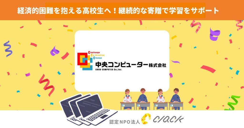 認定NPO法人CLACK(所在地:大阪市、理事長:平井大輝、以下「CLACK」)と、中央コンピューター株式会社(所在地:大阪市、代表取締役社長:林 成則、以下「中央コンピューター」)は、困難を抱える高校生へPCやIT機器を継続的に届ける取り組みをスタートいたします。